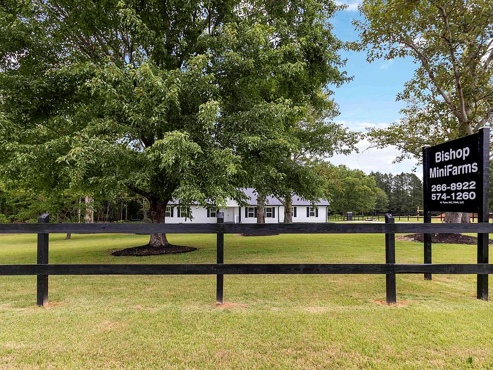 This gorgeous 4/3.5 bedroom home at Bishop Mini-Farms has been totally renewed! This brick and vertical siding home is fully fenced and sits on 1.25-acre lot with carpet grass and beautiful hardwood trees. Entry hall has plenty of space to highlight everything from family photos to special artwork. This home also has Quartz countertops, open floor plan, two master suites, Rear foyer, large deck, and a farm fence with wrought iron entry gate. All new appliances, concrete driveway and walkways, a new heat pump, and a new metal roof. Home also has large utility basement for storage. This is a unique opportunity to create your own family farm!!! Don’t miss out! Seller is Broker/Owner