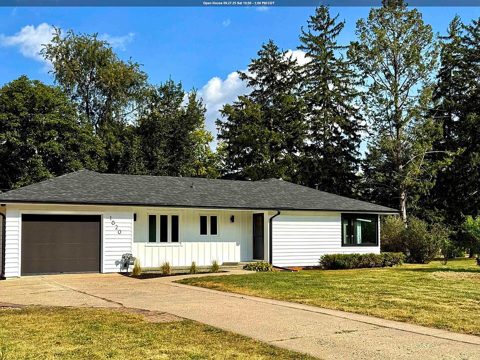Welcome to a timelessly refreshed mid-century home with 4 bedrooms, 2.5 baths, & 3 garage spaces, perfectly situated with its Southern boundary directly bordering the sprawling beauty of Merrill Park. Step inside and fall in love with the brand new luxury vinyl plank flooring that flows continuously throughout the home. The interior features all new premium paint, including walls in the Sanctuary color by Sherwin Williams. The stunning kitchen is an absolute showstopper, boasting new cabinets, a full suite of brand new stainless steel appliances, and breathtaking granite waterfall countertops that demand attention. For added convenience, the main floor also offers a brand new LG WashTower laundry center. The living & dining great room, drenched in natural light from expansive windows, offers incredible views of the park. A versatile fourth bedroom could function as a family room, swanky home office, or sun-room. Every bathroom has been meticulously improved with new vanities, fixtures, & toilets, including the walk-in shower in the primary suite. Rest easy knowing this home has a newer roof, Andersen windows, high-efficiency furnace, and new lighting! Outside, the curb appeal is undeniable, with freshly painted siding and new front landscaping. An oversized one car garage is attached and an additional detached garage offers two additional spaces. This home truly has it all. Is it time to start your next chapter? Let's start here! Make your appointment today!