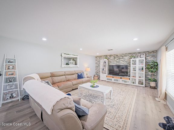 Discover this beautifully updated 2,603sf 4-bedroom, 2.5-bathroom Colonial-style home. Roof, AC and Water Heater are all newer. The downstairs home office can easily be converted to an additional master suite or guest bedroom. Soaring ceilings in the front entry allow ample natural light. The formal dining room leads to a fully remodeled kitchen equipped with white shaker cabinets, quartz countertops, and stainless steel appliances. Enjoy both a formal living room and a great room adjacent to the kitchen. Throughout the home, newer luxury vinyl plank flooring adds elegance, while the fully renovated bathrooms showcase luxury tile, quartz vanities and modern fixtures. Situated on a 0.24-acre lot, the property offers a spacious fenced-in backyard featuring a pergola covered patio, backyard fire pit and tropical plants. This move-in ready home is ready for you to relax and enjoy Florida living with NO HOA. Quick access to 95, Beaches, Patrick SFB, and other major employers!