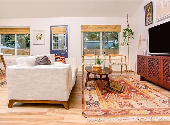 Timelessly updated home with designer touches, conveniently located near shopping & major highways.Tucked in a quiet neighborhood, this home has been completely transformed.New wood look tile throughout including the master.Fresh paint, remodeled bathrooms, and kitchen including brand new crisp white quartz countertops. The backyard will impress with the 8 ft tall cedar fence complete with fire pit and lights.Clay Imports tile on the wood burning fireplace surround inside. New HVAC with Nest Thermostat.