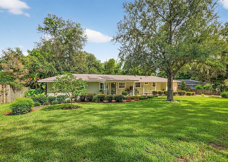 COMPLETELY RENOVATED, GORGEOUS 3 BR 2 BA MT DORA HOME LESS THAN 1 MILE TO HISTORIC DOWNTOWN. Welcome home to Pinecrest, a popular, well-established community in charming Mount Dora, where you will find classic Florida homes on tranquil, tree-lined streets. Prepare to be impressed by this special home, which has been lovingly maintained and offers many fine features and extensive updates. Some of the larger updates include windows, a reroof in 2018, A/C in 2021, entire house replumbed and rewired in 2022, and a water heater in 2024. Beautiful curb appeal greets you with vibrant landscaping and a lush lawn, creating a perfect backdrop for the charming cottage architecture of this welcoming home. A spacious driveway and 1-car garage that is insulated and air-conditioned. A brick-lined walkway leads to the inviting front porch with gorgeous, new wrought-iron supports. What a delightful spot to enjoy your morning coffee. Step inside, where you will find thoughtful updates and modern amenities blended with timeless charm. The open interior is infused with natural light from the many windows and a front French door. Recessed lighting on dimmer switches provides more lighting as needed. The home features elegant wood-look luxury vinyl flooring throughout the living areas. The front living and dining rooms are finished with curved crown molding, and the pleasing neutral tones found here flow throughout the house. The living and dining area features a wide opening that joins it to the spacious family room, complete with a cozy wood-burning fireplace and a convenient office nook. An arched opening reveals the well-appointed kitchen with wood cabinetry, a cabinet pantry, gorgeous granite counters, a breakfast bar, a deep stainless-steel sink, and stainless-steel appliances. The split bedroom floor plan provides privacy for the primary suite with hardwood floors, a ceiling fan, large windows, a built-in closet and cabinets, and a remodeled bathroom with a modern sink vanity and a walk-in tiled shower. Two guest bedrooms, one with built-ins, the other with a walk-in closet, have easy access to the remodeled hallway bathroom with a beautiful, tiled shower. The covered, screened rear porch is the ideal place to relax in the evening. The backyard is quite private with its mature landscape, including mature bamboo. There’s an open sun patio ideal for grilling out and entertaining. Located within 1-2 miles of popular dining and retail establishments, this home offers both tranquility and convenience. Whether you’re exploring the natural beauty found on the many local lakes, enjoying the vibrant historic downtown, or traveling the easy commute to Orlando International Airport, Walt Disney, or popular beaches, this home provides the perfect base for your lifestyle. Don’t miss the opportunity to own this exceptional home in a great community.