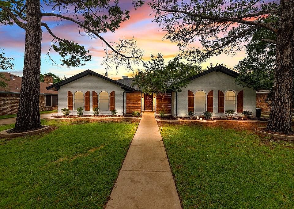 Stunning Remodeled Masterpiece of Elegance in the Heart of DFW! Updates Include New 30 Year Roof, Exterior Completely Repainted & Custom Patio Walls Added, Interior Painted, New Laminate Floors & Carpet, Scraped Popcorn Ceilings, Built In Bookcase & French Door Enclosure, Foundation Work w Warranty, New Doors, Light Fixtures, & More. Master Bath Has Barn Door Installed to New Modern Tiled Shower & Custom Double Vanity Sinks & Walk In Closet. Both Other Baths Revamped as Well. Kitchen Has Butcher Block Counters Added with New Range Hood & Appliances, New Sink, Fixtures, Lighting, Subway Tile, Shelves & More. Split Floorplan with Open Concept Added and All Rooms Can Comfortably Fit a King Bed.Will not Disappoint!