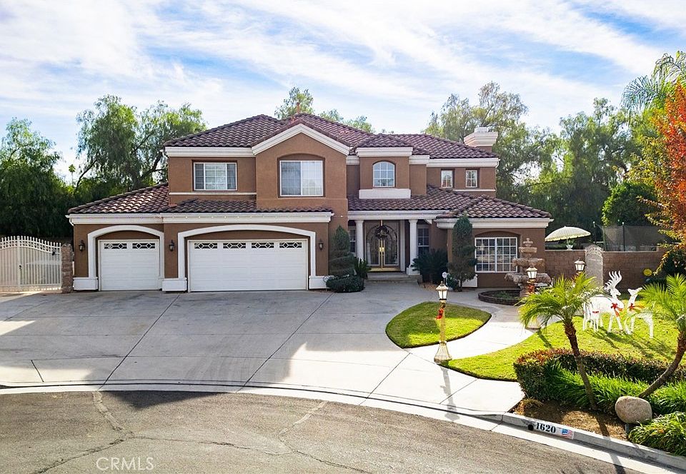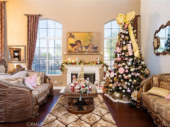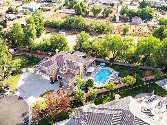 Welcome to this exceptional residence in Whitegate Estates. Upon entering through grand double glass doors, you are greeted by a two-story foyer adorned with custom tile and a formal living room. To the right, a spacious home office offers built-in cabinetry, a dual-sided desk, and picturesque views of both the front water feature and the tranquil backyard oasis. The gourmet kitchen boasts a tumbled stone backsplash, a walk-in pantry, KitchenAid appliances, dual garbage disposals, a breakfast bar, an oversized island with a prep sink, and a wine fridge. The elegant dining room features floor-to-ceiling windows, a custom-painted ceiling by Tim Lemen, and views of the pool. The inviting family room is equipped with built-in surround sound, wood shutters, and a gas fireplace, creating a warm and welcoming atmosphere. On the lower level, a bedroom with a walk-in closet and a full bathroom provide added convenience. Ascend the staircase, highlighted by wood and wrought iron accents, to a spacious landing and a grand master suite. This retreat features a gas fireplace, surround sound, serene greenery views, and a luxurious en-suite bathroom with a jetted tub, a separate shower, dual sinks, and a walk-in closet. The Jack-and-Jill bathroom has been thoughtfully converted into an extension of one of the existing bathrooms. Three additional generously sized bedrooms upstairs offer ample closet space and shared bathrooms, with one room having been expanded to include additional closet storage. The private backyard oasis, with no rear neighbors, offers an ideal setting for relaxation and entertainment. It features a gas fire pit, an oversized covered patio with lighting and fans, multiple fruit trees, and a saltwater pool complete with an LED light show. The outdoor kitchen is fully equipped with a barbecue, cooktop, refrigerator, and bar, perfect for hosting guests. Additional highlights include an RV pad with electrical hookups and a double gate. Recent upgrades include two new high-efficiency air conditioning units. Conveniently located just minutes from Tyler Galleria Mall, shopping centers, dining, and easy access to the 91 and 15 freeways, this home offers unparalleled comfort and accessibility.