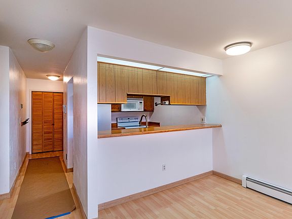 Clean, with laminate floors throughout, fresh paint, windows new in 2015, re-bath in 2013.Very nice unit with its own washer and dryer.Separate storage right outside door to unit. Security building. Dues include all heat, hot water and cable. Guest parking plus specified carport.