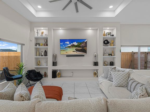 Step into modern luxury with this stunning 2023 custom-built home featuring 3 bedrooms, 2 bathrooms, and a spacious 2-car garage. Designed with style and function in mind, this residence offers 100% tile flooring, stucco exterior, and high-end finishes throughout. A built in media setup make entertaining effortless, and the fully fenced patio provides the perfect patio retreat. This move in ready home is a must-see!