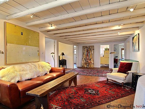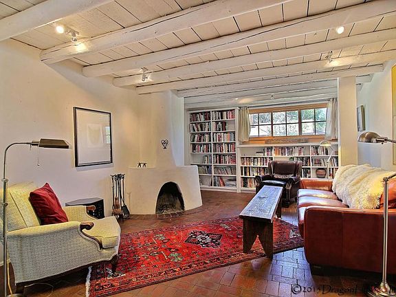 Own a piece of North Valley History! 1930's dance hall, now a private residence. The moment you walk in, you are drawn into the charm of this mostly Terrone Adobe home. New roof & complete stucco work just completed. Eagle energy efficient double paned aluminum clad wood windows to help keep you warm in the winter & cool in the summer. Brick floors, wood ceilings & vigas, 2 living areas, 4 custom fireplaces, cheery, bright kitchen looks out onto private outdoor brick patio with built in fire pit. Large master bedroom with cozy kiva fireplace. 3, possibly 4 bedrooms + a study with its own fireplace. Guest quarters/home office space has its own entrance. Adjacent lot available for sale separately. If you are looking for something endearing in a home, this is it! Special financing thru SIRVA.
