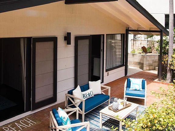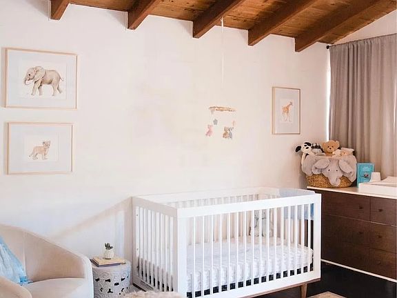 Custom built, single level, midcentury modern home on nearly 1/4 acre west of the 5 Freeway. This ultra private 3 bedroom / 3 bathroom residence cannot be seen from the street! The open concept living space inside features a beautiful exposed wood beam ceiling. Remodeled kitchen with custom lighting and newly updated bathrooms throughout. Ample sized bedrooms with large closets. Two separate, private fenced yards with huge deck in the rear. Gorgeous and mature landscaping on a drip system w/ outdoor fireplace. Forced heat & A/C. One car detached garage plus 2 extra off street parking spaces.
