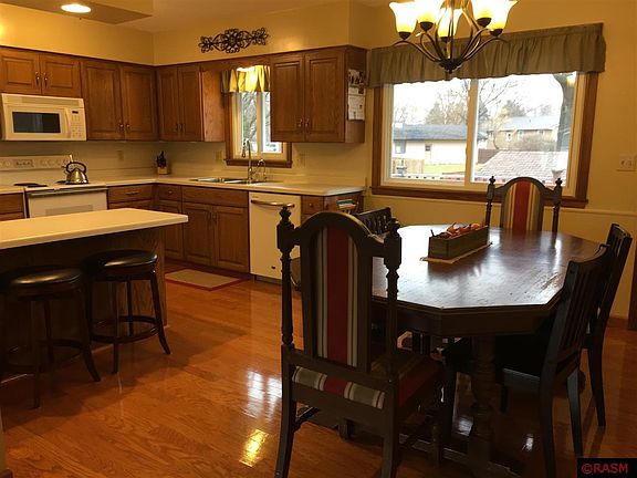 So much living space at an excellent price! This immaculately maintained, move-in ready 4 BR, 2 BA home in Upper North Mankato is sure to please. The home features beautifully finished hardwood flooring throughout the Living Rm, Dining Rm, Kitchen, and Hallway on main floor. The large Living Room with sunny Bay window flows naturally into the open Dining Room & Kitchen with breakfast bar. Main floor also includes a full Bathroom plus the Master Bedroom and 2nd Bedroom, both with new carpet. The lower level is extra cozy with large brick gas Fireplace and newer carpet and paint throughout. The tastefully remodeled 3/4 Bathroom has beautifully tiled shower and floor. The 2 additional Bedrooms are good sized, one with double closet. The utility room with laundry has cabinet storage and built-in desk, excellent for work or hobbies, plus door leading to 2-stall garage. Off the Dining room is a large maintenance free deck. The big yard is nicely landscaped with 120 SF Storage Shed, raised garden beds, and fire pit for all to enjoy. Home highlights are steel siding, gutter helmets, all newer windows and carpet, wood flooring.
