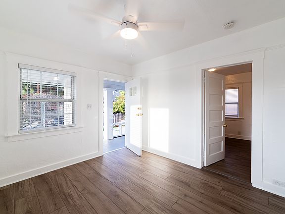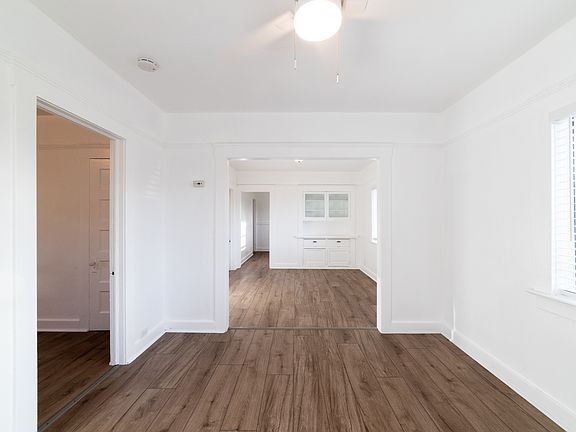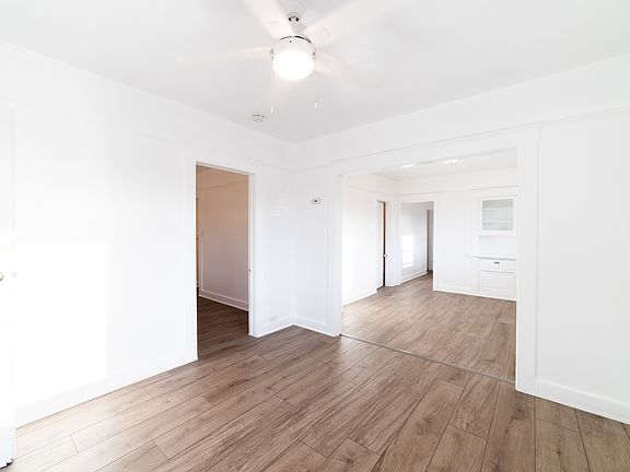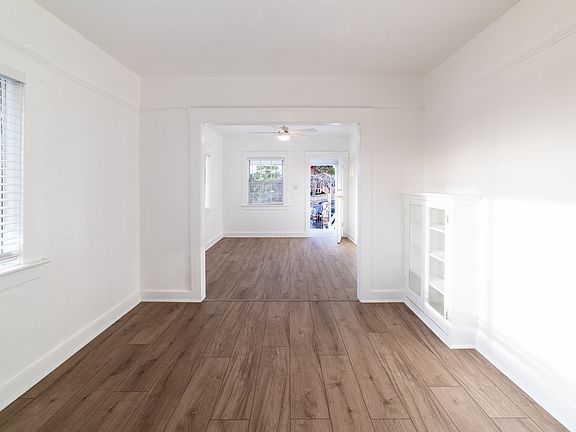 Fresh new floors and clean white walls. Sun dances through every room. A two bedroom one and a half bath bungalow with a bright, pulled-together vibe.