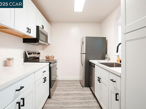 Beautifully renovated 2-bedroom, 1-bath condo offering modern upgrades and a prime location near Todos Santos Plaza, Downtown Concord, Bart, and Costco. This move-in-ready home is perfect for first-time buyers, downsizers, or investors looking for a turnkey property. Step inside to discover a light-filled living space with brand-new luxury vinyl plank (LVP) flooring and fresh paint throughout. The completely remodeled kitchen boasts new cabinets, sleek countertops, and stainless steel appliances – ideal for cooking and entertaining. The bathroom has been fully updated with elegant finishes, including a modern vanity, lighted mirror, and stunning shower tile. This home features dual-pane windows, heating and air conditioning, and a private back patio perfect for relaxing or hosting small gatherings. Additional highlights include dedicated carport parking, a secure storage unit, and access to the community pool. This well-maintained complex also offers a community laundry facility for your convenience. Situated in a highly desirable location, you'll be minutes away from dining, shopping, and entertainment options, and public transportation. Don’t miss the opportunity to own this modern, stylish home in the heart of Concord – schedule your showing today!
