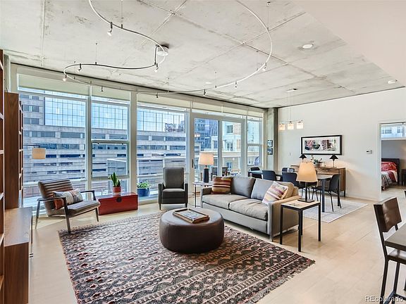 Welcome to One Riverfront and enjoy all the Riverfront Park neighborhood has to offer. Located directly across from Commons Park, you can stroll along the Platt River or walk to shops, fabulous restaurants, Coors Field and Union Station. Enjoy the 6th floor city views in this 2 bedroom, 2 bath luxury home. Floor to ceiling windows make for a light and bright open concept living space featuring a sleek modern kitchen with a large island perfect for gatherings. Huge private deck opens to both the living area and the primary bedroom. The primary bedroom features custom walk-in closet with en-suite bathroom complete with double vanities, separate shower and soaking tub. The second bedroom has a built in desk, Murphy bed and walk-in closet. In unit full sized washer and dryer included along with a 2 garage spaces, storage cage, and secured indoor double bike rack. Urban living at its best.