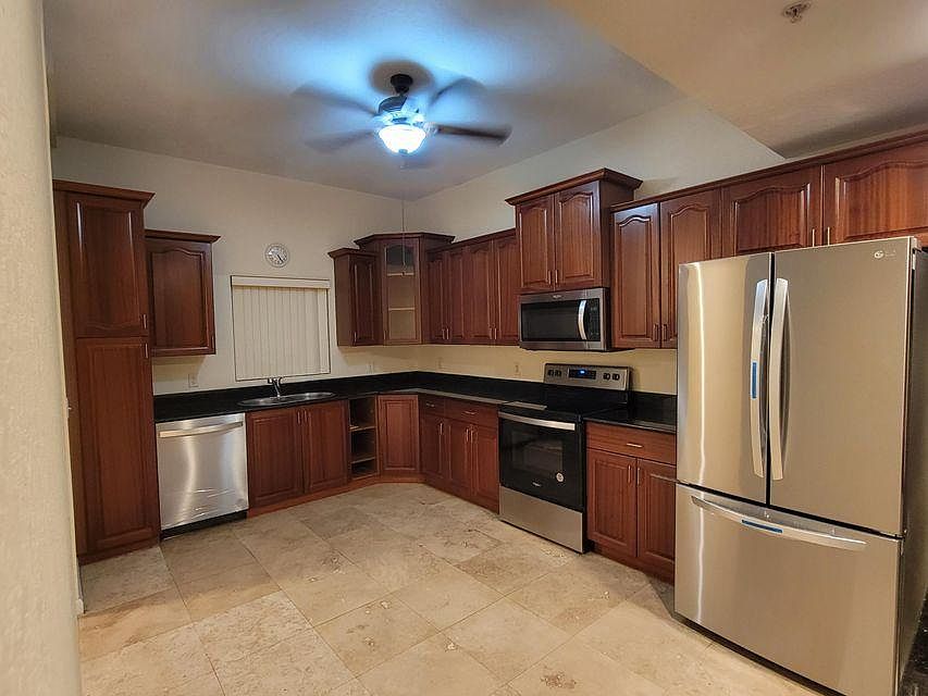 A beautiful, spacious condo in resort style luxury community right across Palm Beach outlets! This light and bright 3 bedroom 2 bath condo features 1638 sq. feet of comfortable living space and is located in the gated community of Park Place. The kitchen offers gorgeous cherry cabinets and BRAND NEW APPLIANCES including glass stop stove, side by side refrigerator, microwave and dishwasher. The living areas and all 3 bedrooms feature ceramic tile and ceiling fans throughout. Secured access to the building & to the garage. Among resort style amenities are gym, pool, meeting & game rooms, sauna, etc. Minutes away from City place, beach, entertainment, hospitals, etc Free water, sewer, trash removal, access to all wonderful amenities. Sorry no pets are allowed for the tenants per condo rules