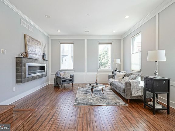 With years remaining on a tax abatement, this 3,000 square foot corner home in Point Breeze delivers contemporary design and everyday luxury just steps from Broad Street and the East Passyunk dining corridor. Soaring 10-foot ceilings, hand-scraped bamboo floors, custom millwork, and an open layout highlight the main floor, where a chef’s kitchen shines with a waterfall island, herringbone tile backsplash, wall oven and microwave, full Samsung stainless suite, and a Viking stove. The king-size primary suite features a private wet bar, large walk-in closet, and spa bath with a freestanding soaking tub and a multi-head glass-enclosed shower, while each guest bedroom offers its own walk-in closet and a second-floor office adds flexibility. A full laundry room is also conveniently located on the second floor. The finished lower level provides space for a media room, gym, or guest suite, and the home is capped by a massive roof deck with skyline views that can be enjoyed from the living room up through the roof deck, along with built-in speakers and a backyard for grilling and entertaining. Smart-home touches include a Nest thermostat, smoke detectors, Google doorbell, keyless entry, security cameras, and a SimpliSafe system for comfort and peace of mind. The location puts you less than a block from the SEPTA #2 bus with direct access to Center City, within a seven-minute walk to three parks, a five-minute walk to coffee shops including Mighty Bread, ReAnimator, and Green Street, and under ten minutes to three different grocery stores. You are also just blocks from the Broad Street Line and within walking distance of neighborhood favorites like South Philadelphia Tap Room, American Sardine Bar, Dock Street Brewing, and the acclaimed East Passyunk Avenue dining scene with Ember & Ash, Le Virtù, Barcelona Wine Bar, and more.