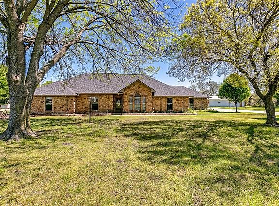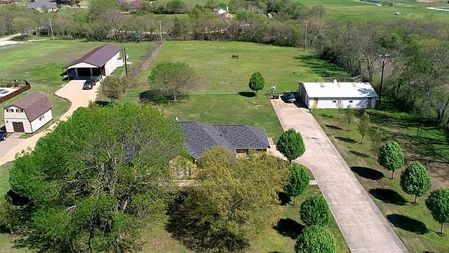 Charming one story home sitting on 2.99 acres backing up to creek and outlined by trees with spacious horse barn with tack rooms and 5 horse stalls! Covered patio overlooking fenced-in pasture. This 4 bedroom, 2.1 bath home has a COMPLETELY REMODELED kitchen featuring Granite counter tops, Bosch electric range and double wall oven with plenty of storage. Owners suite features direct access to the patio and large bathroom and his and hers closet. Three additional bedrooms are oversized and share a Jack & Jill bath. Front formal dining room, bedrooms & kitchen centered around oversized central living space with rich custom wood paneling and brick fireplace. Garage has plenty of room for two full size cars.