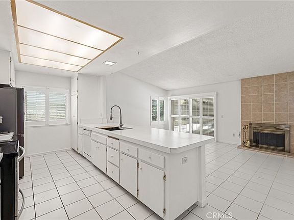 The kitchen features a newer stainless steel farmhouse sink and a large island, ideal for meal prep and entertaining. It includes both gas and electric hookups for the stove, offering flexibility for your culinary preferences. The open-concept layout connects seamlessly to the family room, which boasts vaulted ceilings, a cozy gas fireplace, and sliding doors that open to the backyard—perfect for blending indoor comfort with outdoor living.In the dining room, a built-in credenza adds both charm and valuable storage space. The primary bedroom includes an en-suite bath, while the additional bedrooms offer comfortable, carpeted floors. Laminate and tile flooring throughout the main living areas provide a low-maintenance foundation, though there’s room for updates and personalization throughout.