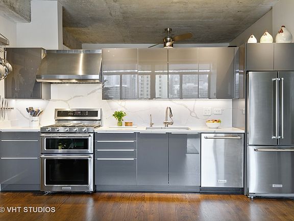 A rare model like home designed to perfection. An amazing twenty two foot span of floor to ceiling windows so you can relish the ever changing seasonal city light scape. Enjoy the chef's designer kitchen with its new grey tone cabinets with KitchenAid appliance package complimented by beautiful quartz countertop and full back splash. Refinished walnut stained real oak hardwood floors and new five inch baseboards. Reverse osmosis water filter system. Main bedroom with enough space for a desk if you choose. Ensuite bedroom with oversized walk-in closet with adjustable Elfa closet system. Custom track lighting through out. Second bedroom can accommodate a queen size bed as well as an office set up. Laundry room/pantry is generous in size for plenty of storage for staples.This home has an open and spacious square floor plan / 1148 square foot interior floor plate with a 123 square foot balcony that spans the width of the home. Amazing downtown city views peeks of the lake and the Field Museum .Easy transportation by bus, train as well as a great walk score Garage Parking 30K. A total of $43,000 in upgrades. Parking space # 182. Building reserves 900K