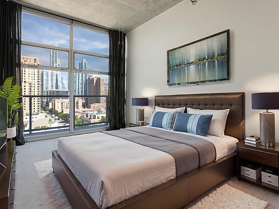 Bright and sunny 2 bedroom, 2 bathroom unit in this mid-rise building in prime South Loop! Expansive floor-to-ceiling windows showcase breathtaking panoramic city views from both the living area and the master bedroom. Both bedrooms are fully enclosed, each featuring brand-new ceiling fans for year-round comfort. The primary bedroom comfortably fits a king-sized bed, while the second bedroom is perfectly sized for a queen, making the space ideal for family, guests, or a cozy home office. In-unit washer and dryer in the walk-in coat closet! Stainless steel appliances. New modern lighting in the entire unit. High ceiling! Keyless entry. Imagine having coffee or sipping wine while enjoying the breeze in the oversized balcony overlooking the city and water view. The entire unit is freshly painted and professionally deep cleaned. Walk to public transportation (red, green and orange EL train. Bus numbers nearby are 1, 4, 3, 12, 146 and 29). Close to restaurants and groceries like Mariano's, Trader Joe's and Jewel. Easy jog to the lake, park and museums like the Shedd Aquarium, Planetarium and Field Museum. Garage parking available for only $100/month.
