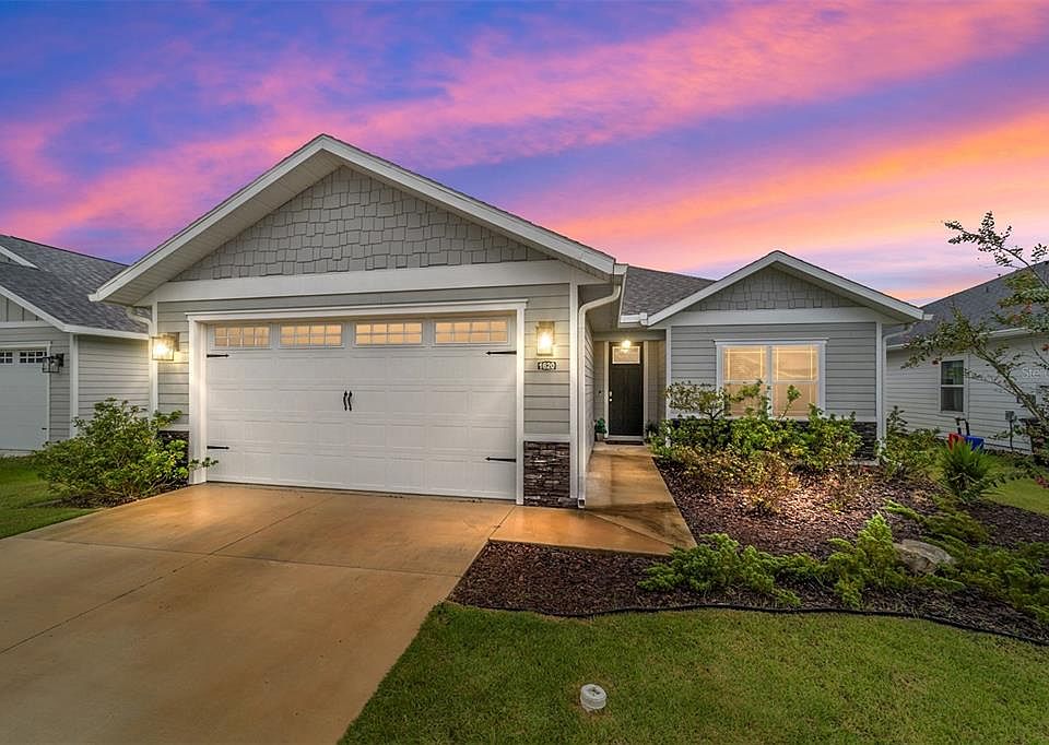 Welcome home to this 2020 Ashton model by Weseman Homes & Renovations. This 3 bedroom, 2 bathroom, 1,724s.f. home sits on a desirable lot in Grand Oaks, overlooking their green space and walking path. This home has been kept in pristine condition, and construction is complete on this street. The standout star here is the gorgeous, modern kitchen with a huge center island, farmhouse sink, gas range, in-wall oven, and bright quartz countertops. Not to be missed is the dreamy, yet practical oversized pantry for all your storage needs. This home has a split floorplan where two bedrooms share a guest bath towards the front of the home, and the master suite is in the back. The master suite features a huge walk-in shower, double vanities, and a walk-in closet with built in wooden closet system. The feel of this home is bright and airy, with high ceilings, crown molding, tray ceilings, a neutral color palette, and plenty of natural light. You will appreciate the indoor laundry room, stop-and-drop station by the front door, and ample storage that this home offers. A 3-door sliding glass door in the living room leads out to a cozy screened-in porch where you can catch some excellent sunrises with your cup of coffee. The exterior is hardiboard with stone accents, and the home has a 30 year architectural shingle roof with a radiant roof barrier, and R38 insulation in the roof. There is also R13 insulation in the walls, a tankless gas water heater, and a 15 SEER HVAC. The Grand Oaks neighborhood offers a community pool and mulched walking path. The convenience of this location cannot be beat, you are just minutes away from local shopping and restaurants at Butler North or Celebration Point, and a quick drive to area hospitals, and the University of Florida.