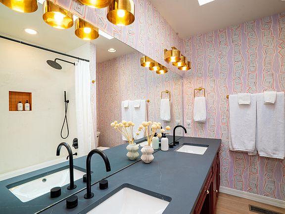 Stunning Fully Renovated Retreat in Four Hills Village! Completely updated in 2024, this home offers indoor-outdoor living and resort-style amenities just minutes from the Sandias. On a spacious .48 acre lot, the home features a beautifully and totally renovated heated outdoor pool and a 2024-installed hot tub, professionally xeriscaped front and back yards, a covered backyard patio and a second private patio off the primary. The renovated kitchen is outfitted with quartz countertops, new appliances, and a marble backsplash, with room for casual family breakfasts in the sunlit nook. The oversized 2 car garage includes a workshop area and extra storage. Currently being used as an AirBnB grossing $13,600+/mo, furnishings are available for sale as well.