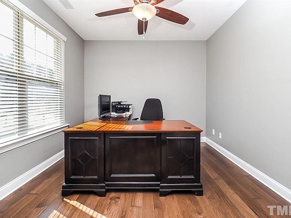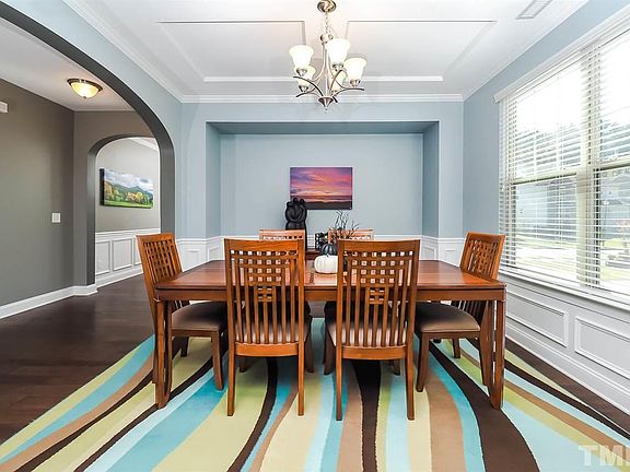 BEAUTIFUL LIVING in this prime Apex home in Salem Village! Gorgeous hardwd flrs & sunlit windows open from Study to Din Rm to Great Rm to gourmet Kit w/ granite, SS, gas cktp, dbl ovens & huge island. Mstr BR w/ sitting area, luxury BA, his/hers vanities & WICs, spa tub & tiled shower. 1st floor Guest Rm w/ full BA. Total 6BR or 5 + Bonus. Screened Porch/Patio backs to level, private, wooded yard! 3-Car Garage & walk-in crawl space. Hm Wrnty incl. FUN Nbhd Pools/Fitness/Play. Great schools & location!