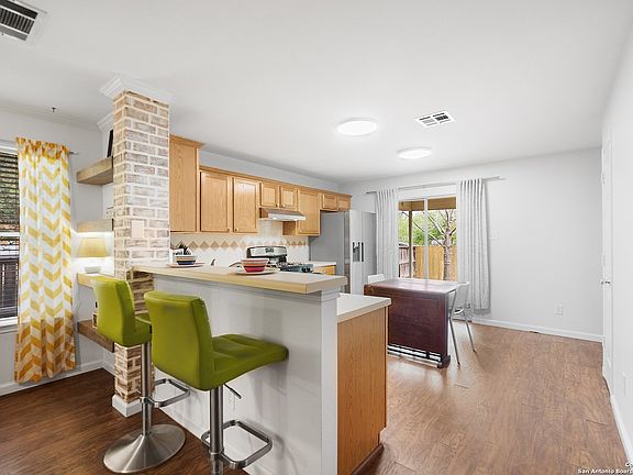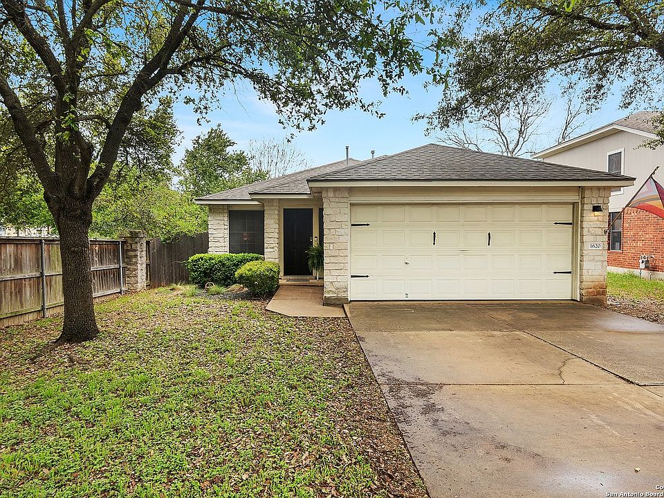Take a look at this trendy South Austin bungalow! Pull into your shady, quiet cul-de-sac location and step inside where you're fully enveloped in windows that bathe every room in natural light. The living room presents a sought-after open-concept layout with charming features like the entertainment nook, the faux brick column, and wood shelves that await your personal touches. With a neutral palette, this home will fit any interior style you choose! The kitchen has an abundance of cabinet space, stainless steel appliances, and a breakfast bar that's perfectly set between the eat-in kitchen and living room creating cohesiveness and a seamless transition. Bright sliding glass doors welcome you to the covered back patio where you will find ample space to grill and lounge near the sizeable backyard. The primary suite sits privately on a corner, featuring windows on two walls for immense natural light, and an ensuite bathroom complete with a marble-style tiled tub area. The remaining two bedrooms are well-sized and share a full bathroom open to guests, as well. 1620 Sir Thopas Trail is nestled at the end of the cul-de-sac end lot and ideally set back from the street. This perfect South Austin location is right off Menchaca Rd where you will find great community amenities, enjoy classic Austin restaurants, beer gardens, and nightlife entertainment nearby. Canterbury Trails neighborhood boasts walkability, friendly neighbors, proximity to schools, shopping, and more all nestled between I-35, 45 Toll, and MoPac for an easy commute!
