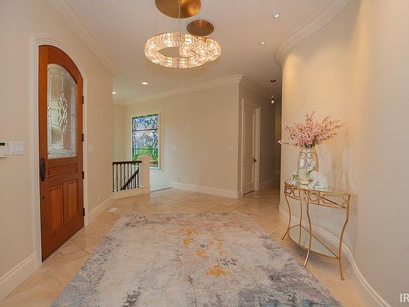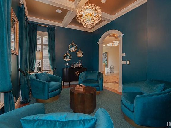 With an air of elegant luxury, and offering a peaceful lifestyle to those who call it home, is this gorgeous Evansville home. Nestled at the end of a tree-lined cul-de-sac, and standing tall and proud on a picturesque 2.64-acre lot, this luxurious, energy-efficient home is a must-see for all those who enjoy the finer things in life. The architecturally-designed residence boasts an impressive 11,000sqft of living space in which every detail has been thoughtfully designed and built with only the highest quality materials and finishes. On the exterior you’ll find a façade composed of beautiful stone and stucco, while on the inside you’ll discover soaring high 10-14ft ceilings, custom imported millwork, solid core doors, a mix of hardwood, travertine marble and bamboo flooring and unique curved walls throughout. An elevator connects each of the level of the home, and there is a quality audio system which adds to the allure. In the impeccable gourmet kitchen you’ll find a host of upgrades including sweeping stone countertops, custom white cabinetry, stainless steel appliances, a walk-in pantry and a large island with bench seating. Multiple living areas enhance the grand feeling of the home and include the impressive 12-seat theatre room with a 10ft projection screen, and the lower level open-concept family room with a billiards nook, game area, kitchen and curved bar. The luxurious main-floor master suite offers over 1000ft of space and features a remodeled ensuite bath with a gorgeous soaking tub, double vanities, a walk-in shower and a custom walk-in closet. There are four more bedrooms in the home, two of which have ensuites and are located on the second floor along with a kitchenette, an art studio, an office, a play room and balcony access. Enhancing the sense of class is the wellness area which features a 6-person spa, sauna, massage room, a 3-piece bath and space for your home gym. Your guests are sure to be impressed by the resort-style outdoor entertaining that overlooks the sparkling in-ground salt water swimming pool. Beautiful landscaped gardens and stone retaining walls surround this space, a water features adds to the charm, and there is a wood-burning pizza oven ready to be enjoyed. Adding further to the appeal are the two attached garages with heating which can fit up to five cars.