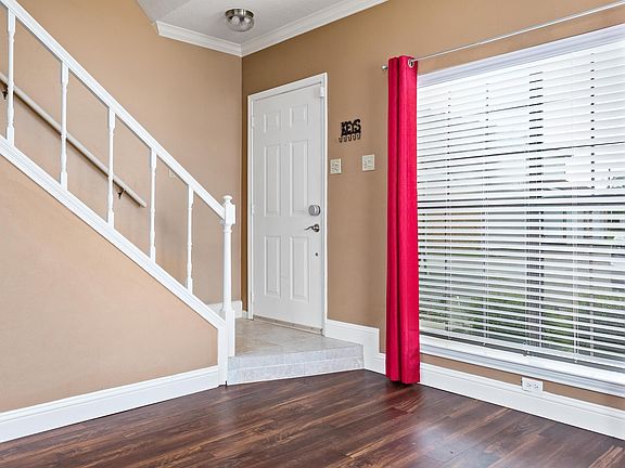 Cozy corner fireplaceLaminate wood flooringWelcoming layoutCommunity pool