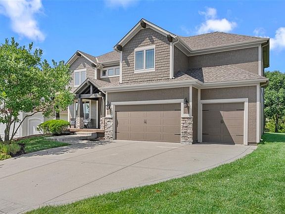 **BACK ON THE MARKET WITH GREAT NEW PRICE ~ PREVIOUS OFFER WAS CONTINGENT, IT EXPIRED!!* HIGHLY SOUGHT-AFTER DEER VALLEY 2-STORY | BLUE VALLEY SCHOOLS! This stunning Cecil & Ray former model home is MOVE IN READY! It offers 5 bedrooms, 4.1 baths, and over 4,400 sq ft of beautifully designed living space. One-owner and meticulously maintained, the home features an open-concept layout with newly refinished hardwood floors throughout the main level (2025). The inviting Great Room with native stone fireplace and wall of windows is a great place to relax. The kitchen includes a large eat-in island, quartz countertops, painted cabinets, walk-in pantry, breakfast nook, and brand-new cooktop, double oven and dishwasher (2025). ALL APPLIANCES ARE STAYING! The main-level formal dining room, pocket office and half bath complete the main level. The spacious primary ensuite is a true retreat with a see-thru fireplace, jacuzzi tub, large walk-in shower, dual vanities, generous walk-in closet and hidden TV inside the vanity mirror. The second bedroom also includes a private bath. Third and fourth bedrooms have a shared bath. The full finished basement is built for entertaining! With a 5th bedroom, full bath, a unique u-shaped, speakeasy style wet bar, whole home zoned surround sound system, and ample space to unwind and/or entertain. Enjoy the oversized, beautifully landscaped yard and open space, great for outdoor activities. Complete with concrete patio and built-in firepit. Major updates include brand new carpet (2025), fresh interior paint (2025), new exterior paint (2024), HVAC system (2021) with transferable warranty, water heater (2023), and roof (2017). HOA community amenities include walking/biking trails, play area, and community pool overlooking the 2-acre lake with fountain. The active HOA hosts many fun community events year-round: Holiday Sleigh Ride, Halloween Parade and More! Fast/Easy highway access, close to restaurants, shopping and Heritage Park.