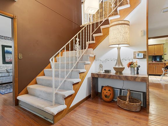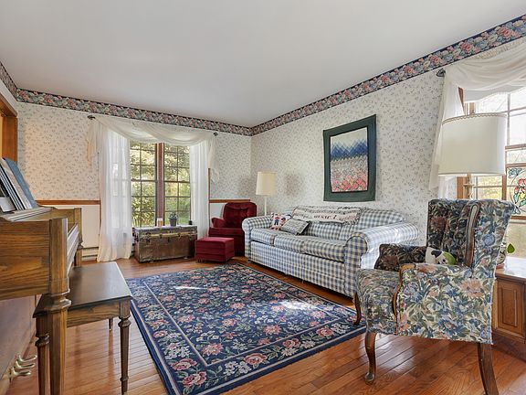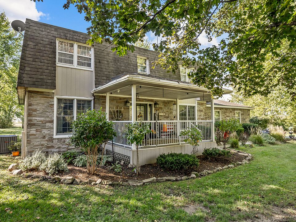 Situated on a beautiful, expansive 5-acre lot, this 3-bedroom, 2.5-bathroom home offers a fantastic foundation to customize your dream home. The generous acreage is the true highlight, featuring 3 acres of pasture perfect for horses or other animals, with ample room for additional structures or expansion. The existing 40'x16' outbuilding with running water and electricity with an attached 16'x14' lean-to, provides great space for a stable, storage, or workshop with 220v electrical outlets. With its functional floor plan, beautiful hardwood flooring through most of the first floor, and abundant storage throughout, this home offers a wonderful opportunity to make it your own. The bright and airy Living/Dining space offers a seamless flow for hosting, featuring a beautiful bay window and two large accent windows. The Kitchen is complete with all stainless steel appliances, a dedicated eating area, and an over-the-sink greenhouse window overlooking the back. Just off the Kitchen sits a small Four-Seasons room. The sprawling Primary Bedroom boasts a private full bathroom with jacuzzi tub and direct access via a sliding door to its own exclusive second-story balcony. The 2nd floor has a small office space as well as a completely redone full hall bath with a beautiful walk-in shower and ceramic tile. Enjoy the tranquil setting of an expansive front and backyard full of mature trees from the large Front Porch or Back Deck that has a remote controlled Sun Setter awning. Practical features include an Attached 2-car Garage, an Oversized Driveway for extra parking, full basement, and many storage options throughout the home and property. This is a smart investment for buyers seeking space, privacy, and the chance to customize a well-maintained, classic home. Property is being sold AS-IS. Don't miss this rare chance to secure your own private slice of the countryside! Schedule your showing today.
