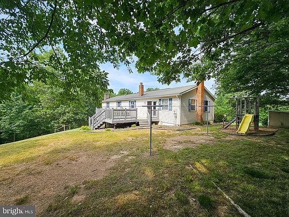 If private and secluded are in your search criteria - the winding curved driveway through the woods to access this rancher on 2.28 acres might fit the bill, Surrounded with enough acreage and mature trees in the country, this spacious rancher with NEW ROOF (June 2023) has 4 bedrooms, 2 full baths on the upper level as well as living room, kitchen and dining area . Lower level has family room with wood stove insert in the brick fireplace, Laundry room and work shop area. The 2 car garage also has a rear facing garage door for extra access. Outside the large deck surface is composite material for longer life. House has Central AC. Wood stove and fuel oil forced hot air heat. Several outdoor structures including play equipment convey. There is a fenced area for pasture. I was not able to find any deed restrictions. Garden area currently planted in cover crop. Seclusion conveniently located just west of Cearfoss. Available for showings starting June 24th. Rare find.