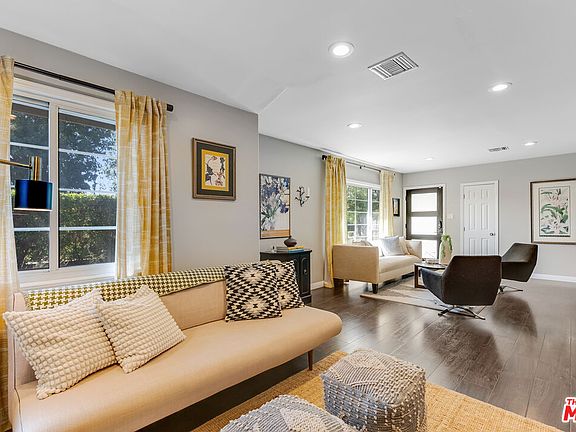 Welcome to your private Lake Balboa retreat. An immaculate single-level home designed for both everyday comfort and unforgettable entertaining. Set behind privacy walls and lush hedging on a corner lot, you'll feel like you've entered your own sanctuary the second you arrive. This 3-bedroom, 2-bath residence spans 1,684 sq ft of thoughtfully updated living space. Beautiful floors flow throughout, leading you to the heart of the home: an open kitchen with breakfast bar that connects seamlessly to dining and living spaces. French doors expand the living area out to a walled courtyard with trellis, creating a natural indoor-outdoor flow ideal for gatherings. A finished garage with custom shelving extends entertaining from the courtyard patio through to the backyard and pool. The expansive primary suite offers a true sense of escape with its custom walk-in closet and spa-like bath with double vanity. Two additional bedrooms are located off a common foyer, and are nicely separated from the primary suite. The custom pool and spa, newly built during ownership, anchor a private backyard oasis, complete with a tranquil water feature, programmable lighting, and outdoor speakers. Drought-tolerant landscaping and an EV charger make the home as functional as it is beautiful. Modern amenities include a smart home system, security system, tankless water heater, central HVAC, and leased solar for energy efficiency. Walk to Lake Balboa park and bike path, golf, and the famous Japanese Garden. Just minutes away are neighborhood favorites such as Katsuya, Super K, Gelsons, Whole Foods, and the famous Springbok Bar and Grill. With its blend of privacy, modern upgrades, inviting spaces, and beautiful grounds, this home delivers the true California lifestyle.