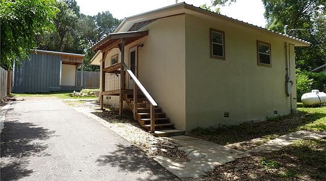 Cute little lake house office/study, single bath with walk-in shower, stacked washer/dryer off hallway w/room for storage, open living, dining & kitchenette area. New gas stove and dishwasher installed. Home was remodeled/rebuilt in 2012, RV hookups, Fruit trees, great workshop with power could be converted to a living space plus extra storage building. Septic will allow for 3 bedroom/2bath 1,500 sq.ft home (per owner), LCRA inspection done on septic. Deeded access to Lake Travis!