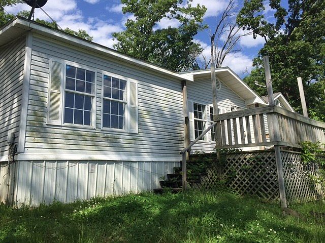 Hilltop setting on heavily wooded 5 + acres. Split bedroom plan with large kitchen. Living room offers wood burning fireplace. Nice front deck with views. Or live in mobile while you build your dream home!