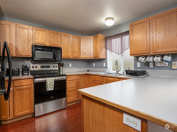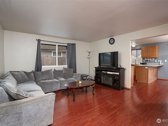 NEW PRICE! This move-in ready home features smart updates, including a brand new roof, fresh exterior paint, and new energy-efficient windows. Inside, enjoy the comfort of brand new wall heaters and thermostats throughout. The spacious layout includes the primary bedroom on the ground level for easy access. Step outside to the charming wrap-around front porch- perfect for relaxing or entertaining. With a large driveway offering ample parking, there's plenty of guest parking or room for all your toys. Located within walking distance to shopping and the bus line, and just minutes from several schools, you'll enjoy ultimate convenience. Commuting to JBLM i easy with nearby access to major routes. This home offers both comfort and location!
