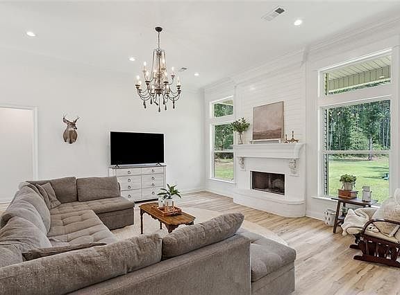 This stunning 4-bedroom, 3.5-bath modern farmhouse sits on nearly 13 acres in the Loranger school district and offers the perfect combination of space, style, and comfort—inside and out. Built in 2022 and filled with high-end finishes, this home features gorgeous crown molding, custom lighting, wood burning fireplace, and a spacious open floor plan with a large flex room that can serve as an office, playroom, or media room. The kitchen is a showstopper with granite countertops, rich gold hardware, stainless steel appliances, gas cooktop, and sleek, modern touches that elevate the entire space. Thoughtful upgrades like two tankless water heaters add to the home’s functionality. Outside, the property offers a beautiful mix of hardwoods and open pasture, is partially fenced, and is ready for animals, gardening, or future expansion. If you’re looking for a move-in-ready home with acreage and a clean, timeless feel—this one delivers.