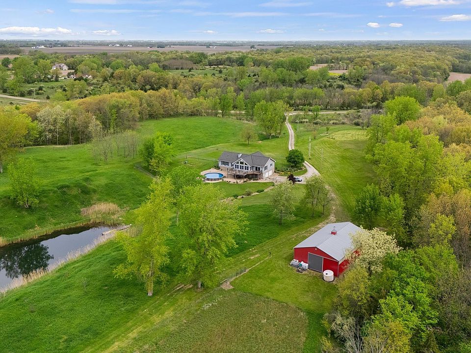 Remarkable Raised Walkout Ranch sitting on an Outdoor Paradise with Approximately 94 Acres, Including a Private 10-Acre Lake, and Outbuilding! Discover this breathtaking retreat just off Cottonwood Road — where privacy, recreation, and natural beauty meet. A pristine, spring-fed 10-acre lake stocked with bass, bluegill, crappie, walleye, and hybrid stripers (up to 25 ft deep) anchors this stunning property. Perfect for fishing, kayaking, or simply relaxing lakeside. Enjoy endless outdoor opportunities — hunting, hiking, ATV riding, or exploring the rolling, wooded landscape. A 36x60 outbuilding with 60-amp electric, gravel floor, and two horse stalls sits beside a 4-acre fenced pasture. The raised walkout ranch offers vaulted cathedral ceilings with cedar beams, floor-to-ceiling windows, Saltillo tile floors, and Mediterranean-style plaster walls. The open kitchen includes a breakfast bar and pantry. The primary suite features a walk-in shower, walk-in closet, and serene views. Anderson windows throughout. Finished walkout basement includes a full bath, family room, and rec space opening to the patio and pool area. A gazebo and beach make the ideal setting for bonfires or camping by the lake. Whether a full-time home or private getaway, this is your chance to own a rare 94-acre slice of paradise! Only 20 Min to Peoria/Grand Prairie.