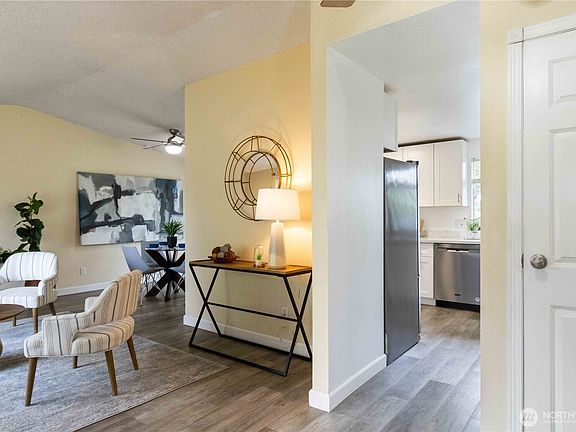 Welcome to this beautifully updated tri-level home nestled in the desirable Fairwood neighborhood. Inside, an inviting vaulted living room with a cozy fireplace flows seamlessly into the dining area—ideal for both everyday living and entertaining. The tiled kitchen with stylish stainless steel appliances overlooks the backyard, while upstairs you’ll find three well-proportioned bedrooms, including a primary suite with a private ¾ bath. The lower level offers a versatile bonus room with sliders leading to a generous fenced yard and patio. Completing this picture-perfect setting is a roomy two-car garage and mature landscaping—all ready for your next chapter. Enjoy being minutes from local shops, dining seatac airport & major freeways.