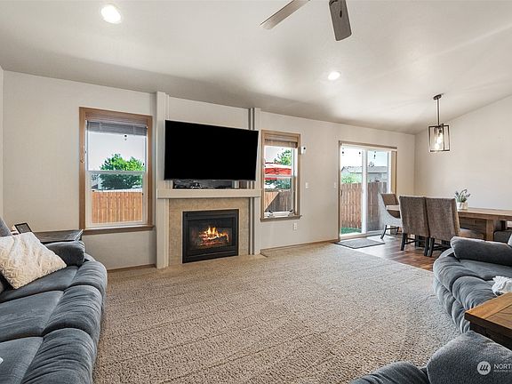 This split-bedroom home provides ample space for comfortable living, featuring a large primary bedroom with an ensuite, walk-in closet, and den on the main level. The updated kitchen showcases an island, granite counters, and plenty of cabinets flowing into a spacious living room with a cozy fireplace. Two more generously sized bedrooms are upstairs, with a bonus room between them. Den is currently being used as an office, but the potential for this room is endless. Laundry room has plenty of storage and even a folding area. The full fencing was added in 2019, full interior paint in 2019, exterior paint in 2020, A/C added in 2020, water heater 2021, and kitchen appliances in 2021. Very close to shopping and quick access to JBLM.
