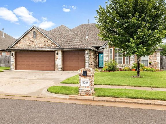 Welcome home to 16204 Bravado Place in Edmond! This home has been loved and maintained and it shows throughout the entire home! This home features 3 bedrooms, 2 bathrooms plus an office space just off the entry way. The living room is nicely sized and opens to the dining room and kitchen. All three bedrooms are nicely sized with plenty of closet space! The guest bathroom is located between the two bedrooms and features double sinks and a shower/tub combo! The master bedroom features large windows for plenty of natural light! The master en-suite bathroom offers a walk in shower and jetted tub! The master closet is just inside the bathroom and if generously sized offering plenty of storage! In the kitchen you will find granite counter tops, an island with plug ins, perfect for entertaining! The refrigerator stays with the home! Just off the dining room you will step out into the enclosed patio, perfect for enjoying the nicely sized backyard! Also featured is a three car garage with a storm shelter! There is a lot to love about this one and it's move in ready! Don't wait! Schedule your private tour today!!