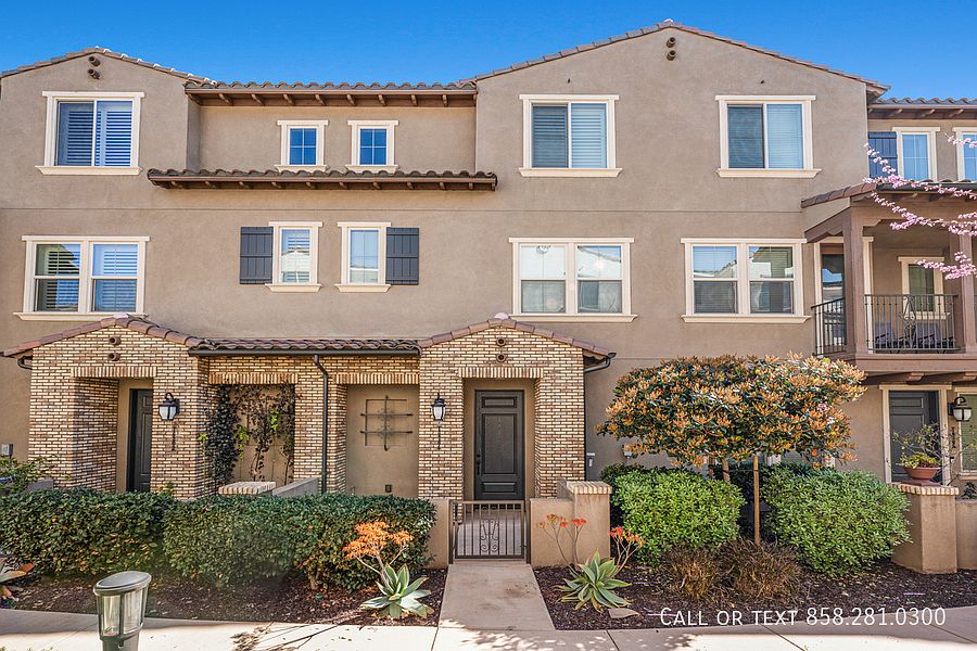 Stunning townhome located in gated community of Veridian. Open concept living with modern kitchen, quartz counters, engineered/LVP floor throughout the house, water softener system. The primary room boasts a luxurious bath w/ marble countertop, tile floors & ensuite 2nd bedroom. Attached large 2 car garage with extra space for storage. Community amenities include a resort style pool with spa, tot lot, dog park, BBQ & trails. Poway Unified Schools.