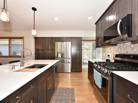 A thoughtfully improved and meticulously maintained home in one of Brookfield's most sought-after neighborhoods, this stunning 4-bedroom, 3-bath ranch blends comfort, function, and style! The current owners have re-imagined the layout, creating an open-concept kitchen with a large island that flows into the dining and living areas. The adjoining family room offers even more space to relax. The expansive primary suite, featuring a walk-in closet with stackable laundry and a spa-inspired bath with heated floors. The second bedroom enjoys its own full bath, while bedrooms three and four share a beautifully updated bath with dual sinks and a shower over tub - all updated and with heated floors! Outside the expansive yard offers privacy and plenty of room to play and a bonus storage shed!