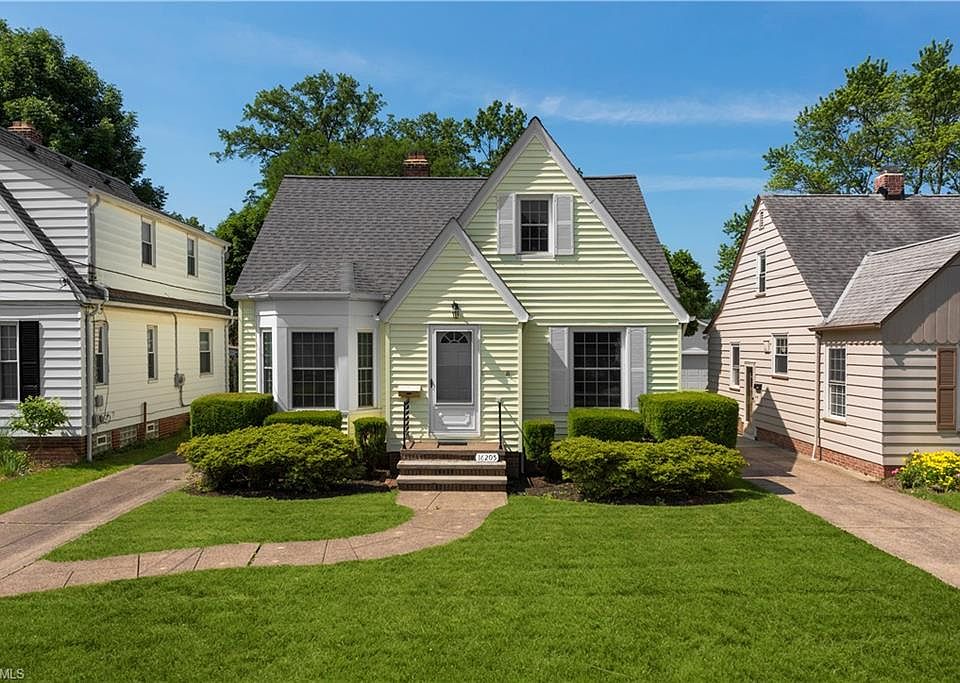 This Classic Cape Cod has a trendy new look. Freshly painted interior sparkles with new lighting. Cove ceiling, china cabinets and unique plaster fireplaces add appealing architectural details. Rich hardwood floors provide the finishing touch. Kitchen sparkles with sunshine from the corner windows above the sink. Original countertops are back in style with their gray and stainless construction. New tile backsplash and flooring. Stove and refrigerator remain. Spacious dinette fits a full size table. French doors lead to TV room with new carpeting. Remodeled 1st floor full bath has step in shower. Second floor master suite includes convenient half bath. Full ceiling height. Cozy alcove is ideal for a chaise lounge. Built in drawers and cabinets. Finished lower level has new carpeting. Quaint wall sconces for ambient lighting. Large storage area. Washer and dryer included. Two car garage with new doors and openers 2016. Double hung, tilting energy efficient windows 2014, Roof 2012, Furnace and air conditioning 2013, Glass block windows. Prime West Park location close to I-90, Kamms Corner, Warren Village, Fairview Hospital, Metroparks, Impett Park and two houses away from Munn Park.