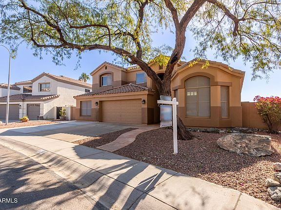 Ahwatukee Foothills finest featuring 4 bed, 2.5 bath, oversized lot & stunning pebble-tec diving pool! Balcony off the loft sunset mountain views! As you enter through the beautiful wrought iron security door, be greeted by the expansive entry with 18+ ft vaulted soaring ceilings & spacious rooms. Downstairs primary suite with beautifully remodeled en suite bathroom w/ soaking tub, glass shower, dual sinks & walk-in closet. Kitchen has oversized island w/ granite countertops, barstool seating, rich wood cabinets, SS GE appliances, GE Monogram wine fridge, built-in bread box, recessed lighting. Eat-in kitchen dining space w/ backyard views, open to the lovely living room w/ vaulted ceilings & built in surround sound. Light & inviting neutral paint, lots of windows & natural light. Upstairs bathroom recently updated w/ granite countertop. Incredible backyard oasis featuring sparkling diving pool, built-in BBQ & fireplace, paved sitting area, storage shed with tile roof, play area & more! Newer windows on south side of home w/ modern blinds. Located on a lovely tree lined block just minutes from shops, dining, freeways and South Mountain Park. The ease of village living with the splendor of nature minutes away. No immediate neighbors on one side. Top rated Kyrene Schools offers a personalized educational journey for every student, renowned for its commitment to academic excellence. Active Lifestyle trails galore at South Mountain. Close to 202 freeway, I10 freeway, Ahwatukee dining, gas stations, salons, shopping, & so much more.