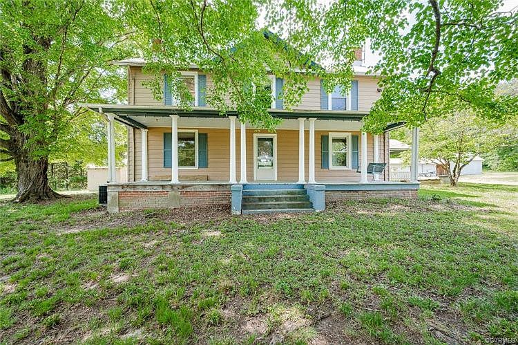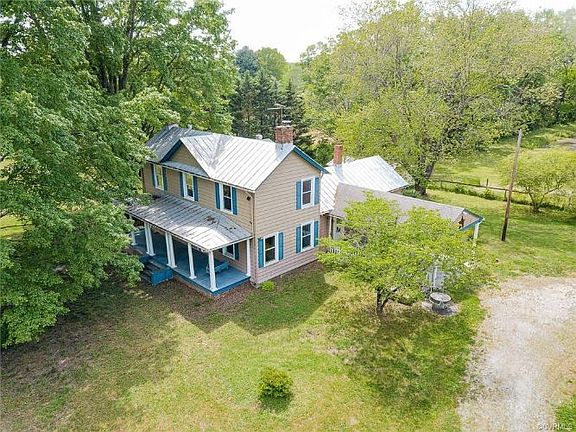 This Home is full of Charm and has Loads of Potential. Historical 1900's Farmhouse with 3 bedrooms and 2 full baths. Large renovated kitchen with breakfast nook that leads to a large deck. The home was the rectory for the Methodist Church at one time. Home has pond and creek located on the back of the property. Sit on the front porch and enjoy the trains and church bells! Walk to church, pharmacy, country store, 10 mins to Food Lion, 25 mins to Short Pump and more... Garage has new flooring. Freshly painted, new carpet, partly renovated 3 Bedroom 2 Baths, with spacious kitchen, breakfast nook located off the family room and huge deck.1900's pine floors throughout, ample storage, built in oak desk and shelves, and some cedar lined closets. New appliances include-double oven, Bosch dishwasher, Carpet 3 years old, 2 HVAC systems with 1 only 4 years old. There is oil backup for the cold nights should you want. There are 3 barns-cattle milking barn all needing repair. The garage has a new concrete floor, sliding door, new trusses and roof. All 2 years old. Gorgeous views great for horses with fenced area and a pond. Many fruit trees(Elderberry, Peach, fig and many others.