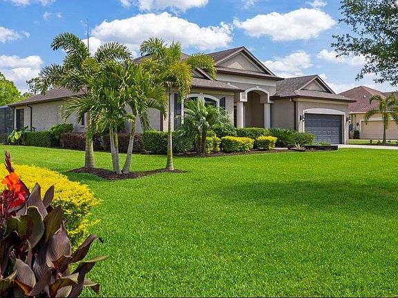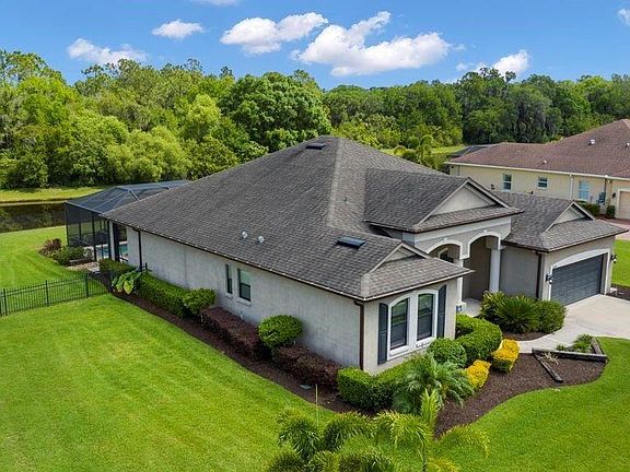 Welcome to your own piece of paradise. Medallion-built, Aruba model with added bonus room and pool bath sits on a beautiful almost half acre lot in the sought-after community of Twin Rivers. Step inside to white antiqued kitchen cabinets, upgraded granite, wood tray ceiling detail in the great room, hand-scraped wood floors in the main living areas, upgraded vanities, counters, and tile in the bathrooms, fully screened in patio with expanded lanai and refreshing heated pool, and spa. The fenced-in yard space makes for a perfect backyard for your kiddos and pupps. The covered outside area is perfect for an outdoor living area right by the pool. This home has the perfect open layout giving you space and more privacy with the split bedroom design. Make this your next home and enjoy the quiet scenery and the ever-green outdoors that Parrish has to offer.