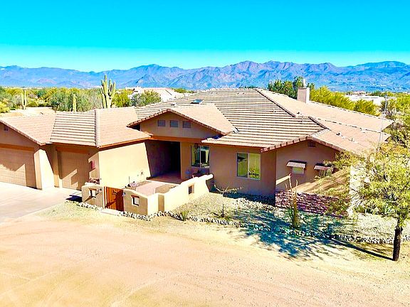 Modern Desert Equestrian Estate with Iconic Four Peaks Views. Where refined design meets wide-open desert living, this gated 2.5-acre premier horse property delivers a rare blend of luxury, function, and unforgettable scenery. Framed by sweeping Four Peaks mountain views, this custom home (built 2004) is designed for those who want space to live boldly—both indoors and out. Equestrian enthusiasts will appreciate the 4-stall barn, tack room, large grain silo, riding arena, and round pen, all thoughtfully laid out with dirt roads ideal for horses & off roading. Whether training, trail riding, or simply enjoying the lifestyle, this property is ready to perform. Inside, the home showcases a striking blend of industrial and artisan finishes including acid-stained concrete floors, custom hickory cabinetry, and a show-stopping kitchen with beautifully curated granite countertops. Entertain effortlessly at the wet bar with its stunning copper countertop, perfect for gatherings after a day outdoors. Step outside to your private resort-style oasis: a pool and spa with negative edge, built-in barbecue with concrete countertops, and an extended covered patio all positioned to capture breathtaking sunsets over the Four Peaks. This is where mornings are peaceful, evenings are golden, and every moment feels elevated. Additional highlights include a large RV shade structure, storage/workshop space, and an owned security system, offering both convenience and peace of mind. This is more than a homeit's a lifestyle property built for freedom, views, and unforgettable desert living.