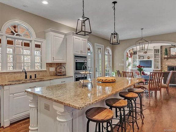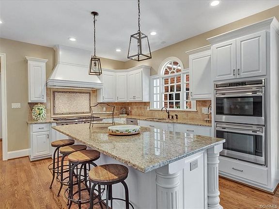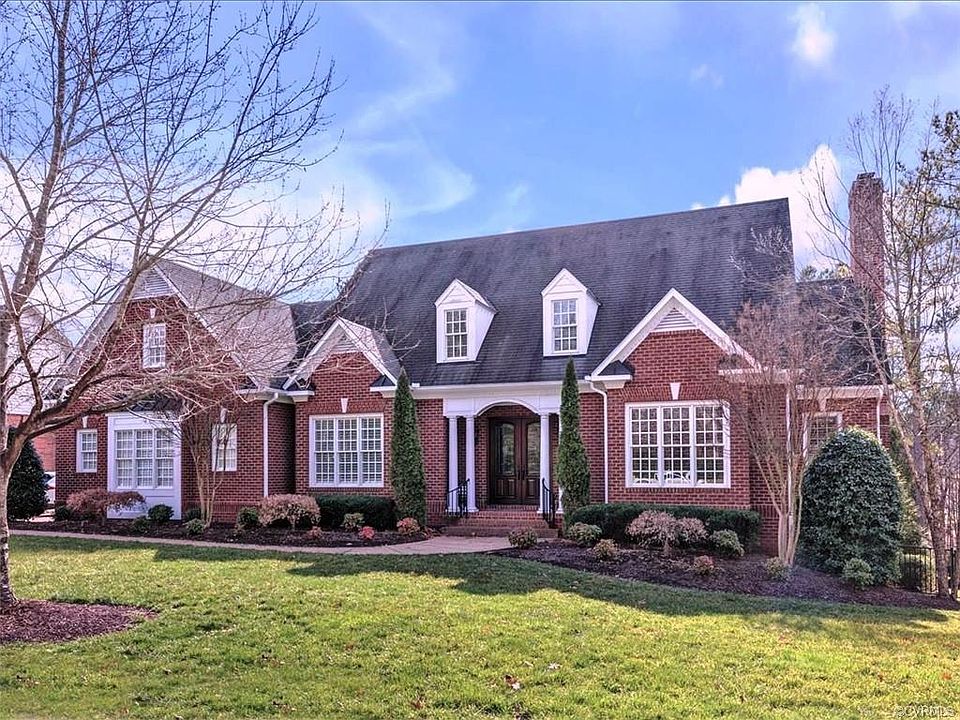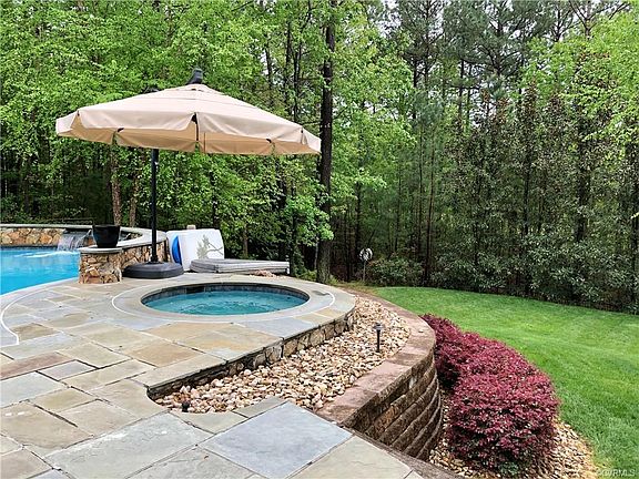 Vacation home in Midlothian! Located on the 15th Fairway in Founders Bridge with plenty of room for everyone! The first floor master has a gas fireplace, bay windows & overlooks the beautifully landscaped rear yard ~ exquisite salt water pool with waterfalls! Five additional bedrooms on the second level each having their own full bath! This home was custom built by Homeplaces with attention to detail with curved archways, crown moulding and beautiful hardwood floors! The spacious dining room leads into the chef's kitchen with large center island! The high end appliances and hardwood floors make this a 'wow' kitchen! The family room which is open to the eat-in kitchen has a gas fireplace and beautiful built in custom cabinets. The full walk-out basement is perfect for entertaining with many built-ins! Blue stone patio and grilling area. You have a very private rear yard in the summer and can enjoy the golf course views in the winter. Three car garage! Feels like country club living with a golf course, pools, tennis court, walking paths, Club House with Tavern 19 dining and many community activities.