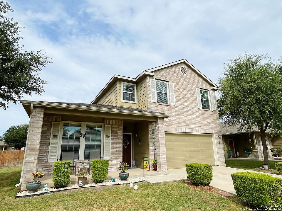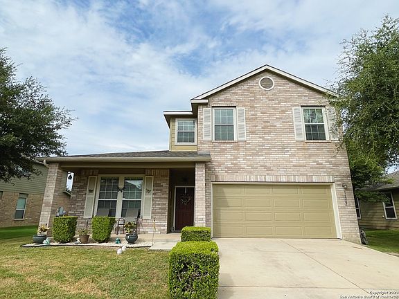 Light bright and open. Well appointed Two-Story home in Retama Springs offers 4 bedroom 2.5 bath home with bonus room and separate office. Upgrades include 9' ceilings, french doors to office, ceramic tile floors, neutral colored carpet, upgraded padding, covered patio, stained privacy fence, 2" faux wood blinds, sprinkler system, in-wall pest sys. and more! Master bedroom is downstairs and bath has double sink vanity, separate tub/shower, garden tub, elongated toilets, and 36" shaver height vanity. Kitchen boasts granite counter tops, 42" upper cabinets, breakfast bar, vegetable sprayer, and water softener.