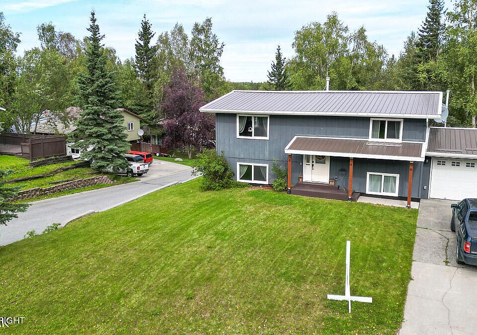 Welcome to this beautifully remodeled split level on the corner of a quiet cul-de-sac. Close to stores, restaurants, gyms and more, short commute to JBER.Large primary suite located downstairs for privacy with a 2nd living room and gym/office area with access to the backyard.Covered walkway from the garage to front door to keep you out of the weather.NO HOA! Brand new furnace 8/22!VA Assumable at 5.125% for qualified buyers. Also listed for rent for $2,895/mo. MLS#25-13197