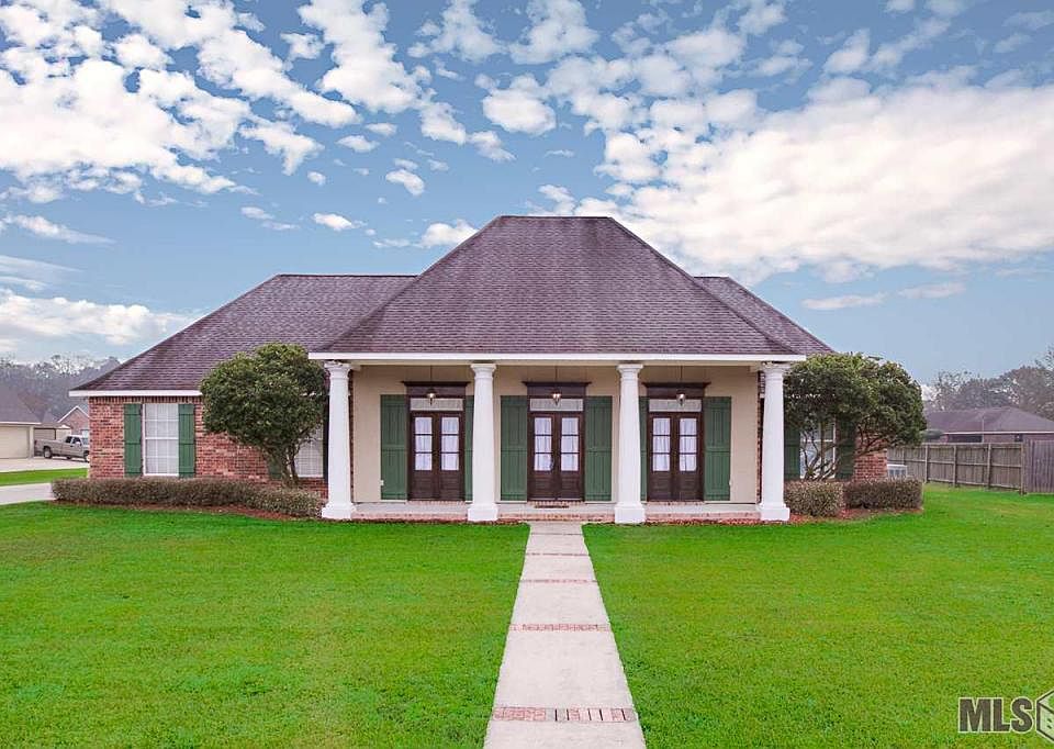 Beautifully maintained Acadian style home in the very desirable subdivision, Ole Homestead. Ole Homestead has a community pool & small playground. This Home did NOT flood in August, 2016. Great split/open floor plan. Den has 11 ft ceilings, ceiling fan, crown molding, accent lighting, pretty real wood floors, granite surrounds the gas logged fireplace and a set of French doors that opens to the screened in back porch. Heart of pine beams separate the Den from the office/study. The Office has wood floors, crown molding and a set of French doors that opens to the front porch area. The Formal Dining has wood floors, crown molding and a set of French doors that opens to the front porch. The Kitchen has brick pavers, stained alder wood cabinets, gas cooktop, stainless hood, granite counter tops and back splash, corner appliance garage, triple stainless sink, pull out drawers, wine rack and a breakfast bar. The refrigerator and microwave remain. The Breakfast room has brick pavers, a wall of windows and crown molding. The Guest Bedrooms have ceiling fans and 2 inch faux wood blinds. The Guest Bathroom is a hollywood bath with separate shower/toilet area, tiled floors, lots of storage.The laundry has brick pavers, built in ironing board, soaking sink and lots of storage. The Master Bedroom has boxed ceiling, ceiling fan, crown molding, lots of windows and double closets. Master Bath has tiled floors, double sinks, separate toilet area, jetted tub, separate shower, framed mirrors. The screened in patio is great for entertaining and has a ceiling fan. Large yard. Extra concrete for parking. There is an attic lift in the garage, which allows for easy access.
